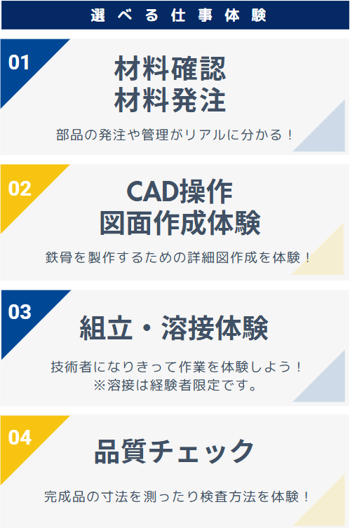 ※溶接体験は学校などで経験したことがある方のみとなります。